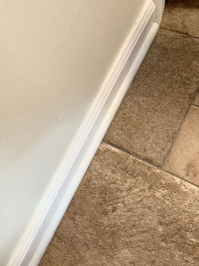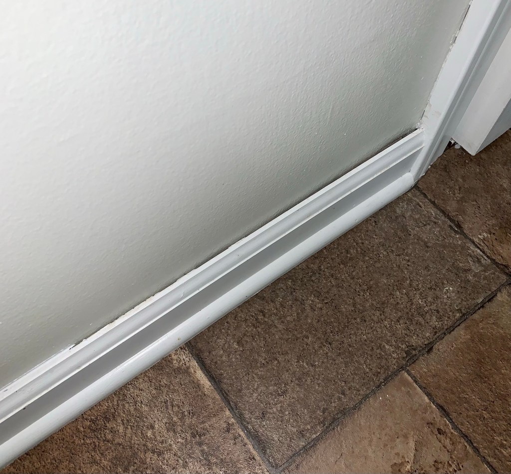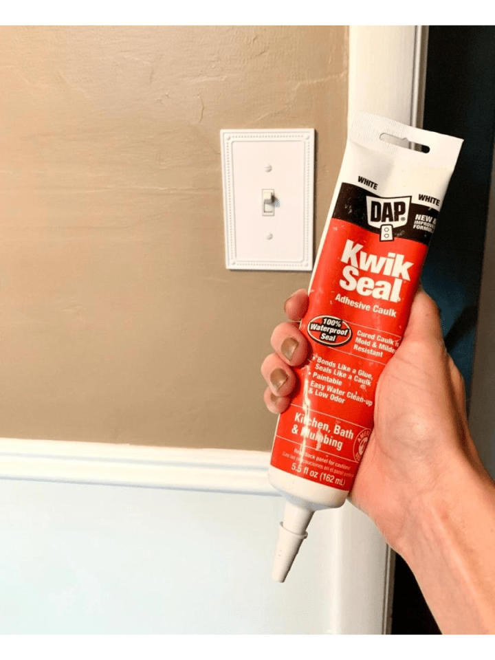 A year ago, I had no idea what caulk was. Now I use it all the time! Caulk is a material used to seal joints or seams against leakage in various structures and piping. Since our house is older, it has shifted over time, resulting in gaps between the baseboards and the walls. Caulk adds the finishing touch to a wall and makes it look crisp.