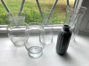 Does anyone else have a lot of vases? If you’re like me, you may have a collection of many vases of different shapes and sizes that have found their way into your storage over the years. The other day, I thought I could update them to fit my decor and give a more modern feel to. So, I grabbed all the vases with the most potential and picked out the vases with the best shapes and textures. If you don’t have any vases at home, check out your Grandparent’s basement, your local Goodwill, or as in my case, a few of these came from Dollar Tree.